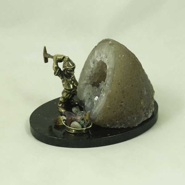 Гном геолог, жеода агата, подставка долерит